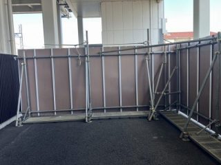 単管シートフェンス施工において、現場周囲の気遣いと綺麗な仮囲いを考えて施工をしています。